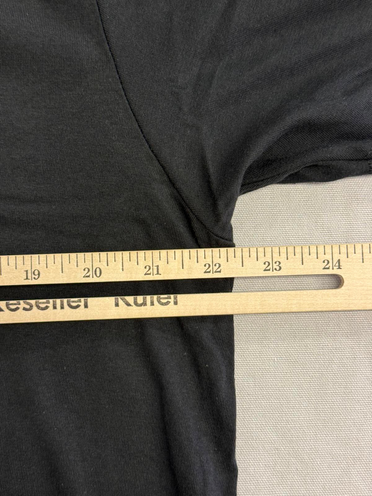 Because the shirt hasn't been worn I didn't measure it, but message me and i'll be happy to send over dimensions. (I did take a picture of the pit to pit measurement)